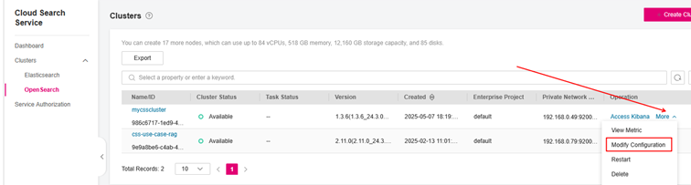 1. Wähle rechts aus dem CSS-Cluster die Option “More” aus und wählen anschließend “Modify Configuration”:
