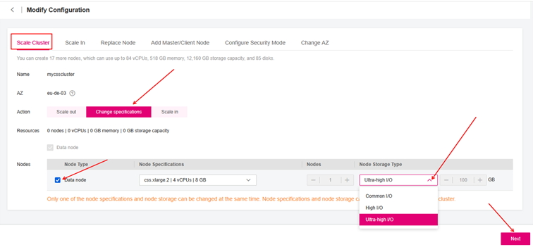 Bestehende Instanzen mit Common I/O bleiben unverändert und werden unterstützt, bis sie in eine höhere Klasse wie High I/O oder Ultra High I/O Speicherklasse umgestellt werden. Das bedeutet, dass Sie einen “Change Storage Type” für Ihre Common I/O-Festplatten im Einsatz planen müssen.