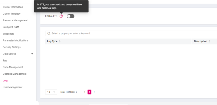 Kluster-Logs werden gesammelt und an Log Tank Service (LTS) gesendet. Sie können die gesammelten Kluster-Logs auf LTS überprüfen oder ausgeben.