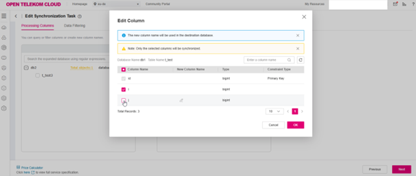 DRS bietet in dieser neuen Funktion eine Bearbeitungsfunktion auf Spaltenebene, die es Benutzern ermöglicht, selektiv bestimmte Spalten von Daten zwischen Quell- und Ziel-Datenbanken zu synchronisieren; diese ist wie folgt zu finden: