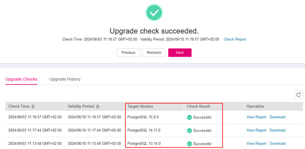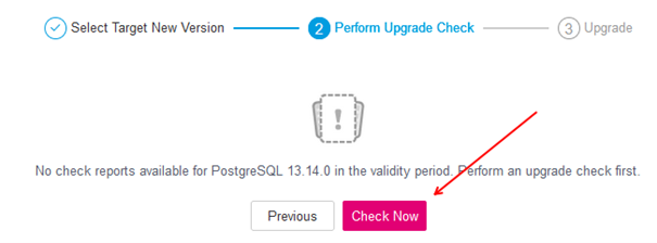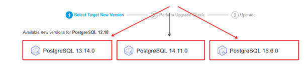 - Upgrade without cutover: You can use it to test service compatibility of a new version. Upgrading a major version may cause service compatibility issues. A compatibility test is strongly recommended. After the test is passed, perform an upgrade in cutover mode. An upgrade without service cutover will not affect the original instance.